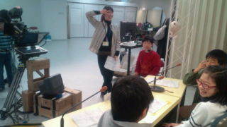 NHKにいます。放送体験として2組の番組制作が始まります。準備と練習をしています。11:30