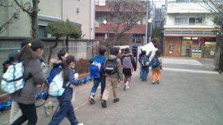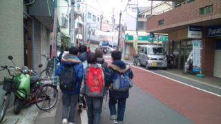 学校を出発しました。祐天寺の駅に向かいます。8:05