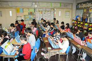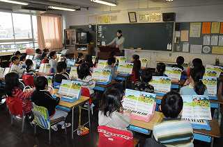 歌の次は、鍵盤ハーモニカで「こいぬのマーチ」を練習しています。