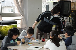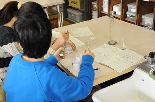 「もっと水に溶かすためにはどうしたらいいのか」を課題に実験をしています。