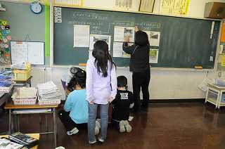 地域めぐりに出かける前に、道順や見学する場所などの確認をしています。