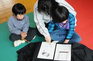 絵で物の名前を確認した後、ブランコに乗りました。