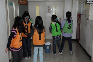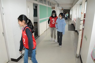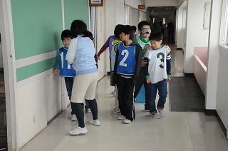 4年生がアイマスク体験をしています。