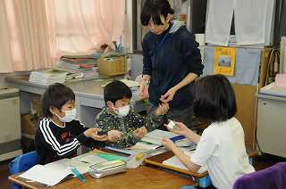 「体積と重さの関係」について実験しています。