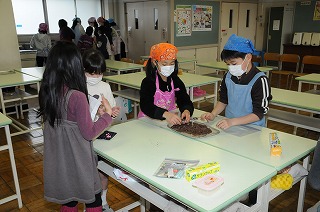 3年生といっしょにチョコレートを作っています。
