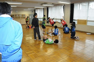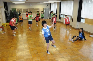 雨が降ってしまったので、室内で3年生といっしょに運動をしています。