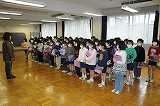 学年で6年生を送る会の呼びかけの練習をしています。