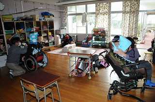 わかたけ学級独自の避難訓練を実施しました。地震を想定し、校庭に避難した後で特活室に移動しました。