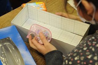 長さを測って、切って、つないで箱を作っています。