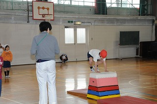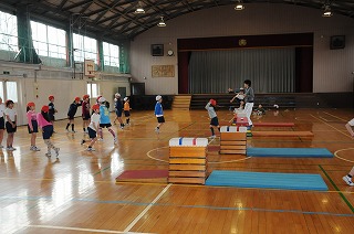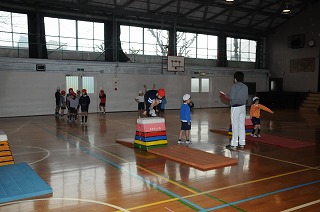 とび箱を縦に置いてとんだり、横に置いてとんだりしています。