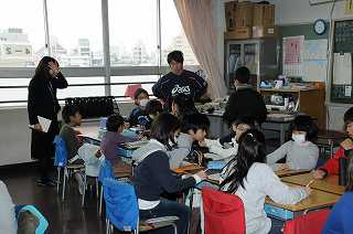 今日のなの花タイムは、縦割り班活動です。1年間お世話になった6年生に渡すメッセージカードを作るために、6年生からいろいろな話を聞いています。