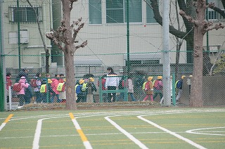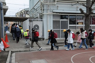 自然災害や不審者対応等で必要な場合には、集団で下校します。今日はその訓練をしています。