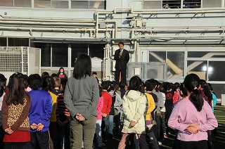 校長から「春の訪れ」「油面小合唱団の合唱祭参加」「インフルエンザの予防」についての話がありました。