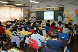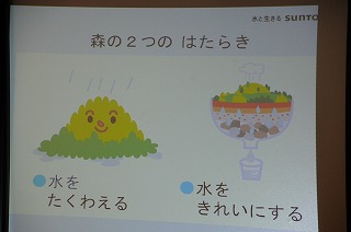 外部から講師を招き、実験をしながら森のはたらきについて考えています。