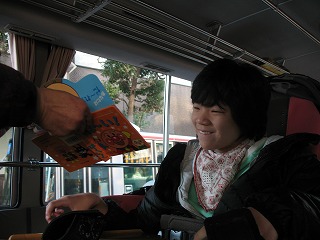 学校を出発し、ディズニーランドに向かうバスの中です。