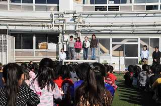 先週まで2年生が行った子ども郵便局のお礼を、全校の子どもたちに言いました。