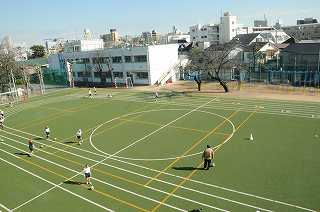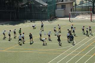 校庭でサッカーの練習をしています。