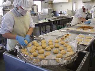 今日のピザまんも、給食室での手作りです。形ができたら、蒸します。