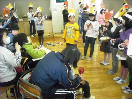 今日は2−1の子どもたちが、わかたけのお友達と音楽で交流をしました。