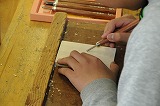 彫刻のデザインを考え、ブック形のペンスタンドを作っています。