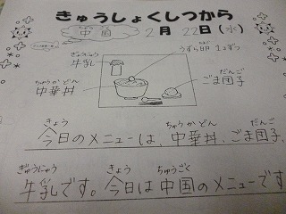 <毎日教室に届けられる給食室からのメッセージ>