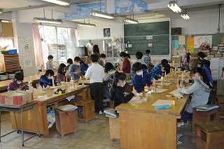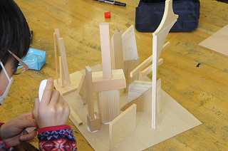 「トーテムポールの町」をテーマに、木を積み上げて作品を作っています。