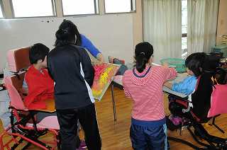 卒業生が在校生へのプレゼントを作っています。
