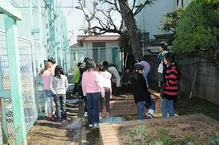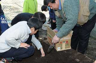 みんなで、じゃがいもを植え付けています。