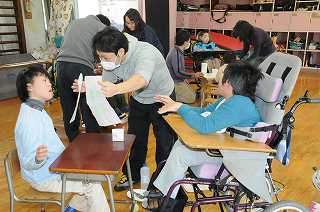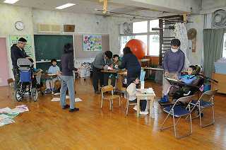 わかたけ学級の在校生が、卒業生へのプレゼントを作っています。