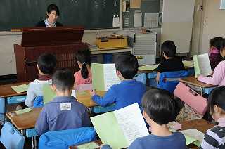 入学式で演奏する歌と合奏の練習です。前半は、歌の練習です。