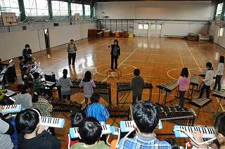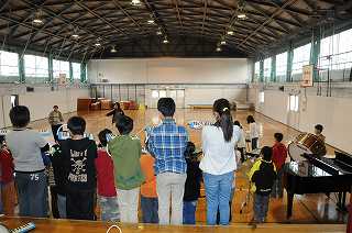 体育館で合奏と合唱の練習をしています。連合音楽会を思い出す、素晴らしい演奏です。