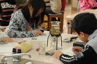 水のあたたまり方について、予想したことを調べる実験をしています。