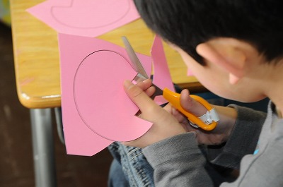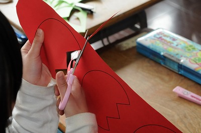 新1年生のために、教室の飾りを作っています。