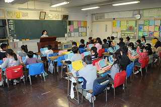 二種類のカードを使って、鍵盤ハーモニカの練習をしています。