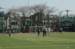 春のような日差しの下で、野球の練習が始まっています。