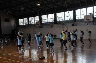 音楽に合わせて、振り付けの練習をしています。