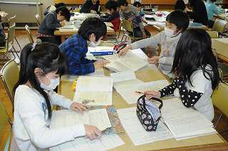 「本で調べてほうこくする」の教材で、自分の決めたテーマを調べる本を選んでまとめています。