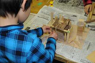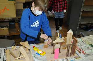 「トーテムポールの町」をテーマに、トーテムポールの町の組み立てをしています。