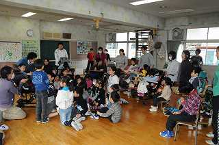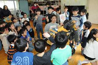 わかたけの子どもたちと、2−2の子どもたちとの交流で、じゃんけんゲームをしています。