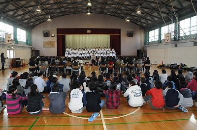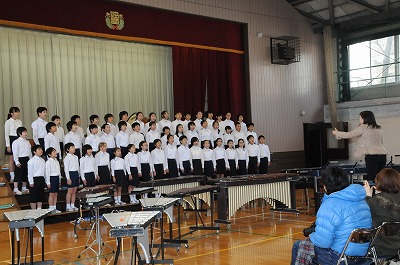 今日は1年間の音楽の学習の成果を披露するミニコンサートを開きます。保護者の皆さんと6年生を前に演奏します。
