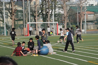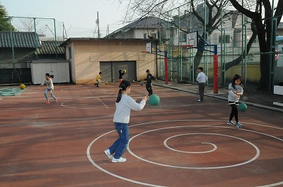 暖かい日差しの下で、子どもたちが遊んでいます。