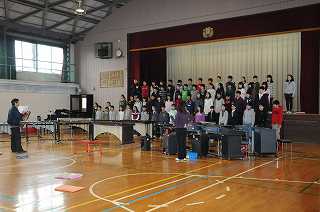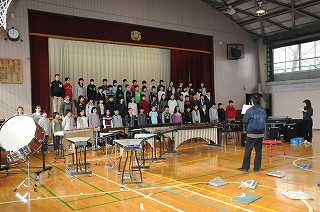 6年生送る会のリハーサルをしています。