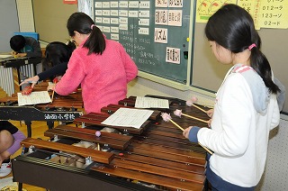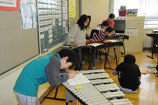 チキチキバンバンの合奏の練習を楽器ごとに分かれて練習しています。