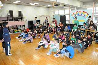今日はわかたけ学級と2年1組の交流会です。はじめの言葉の後、2年生が考えたプログラムに沿って会が進められます。