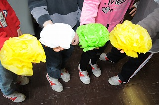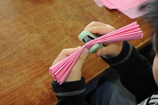 新1年生のために、教室の飾りを作っています。
