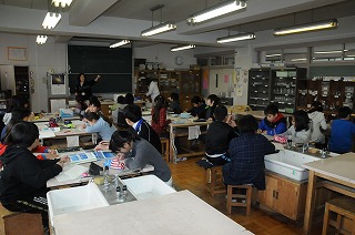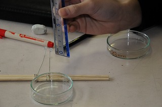 先日作っておいたミョウバンの結晶を取り出し観察しています。