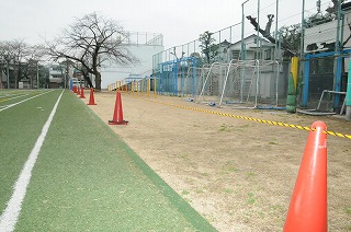 鉄棒や上り棒の所に植えてある天然芝の養生が始まりました。4月の中旬までの予定です。今年も青々とした芝生にするためにご協力をお願いいたします。
