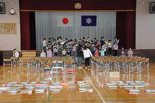1年生が合同練習をしています。子犬のマーチが、とてもじょうずになってきました。