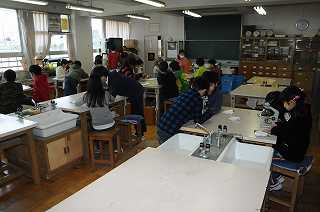 食塩とミョウバンの結晶を、顕微鏡で観察しています。