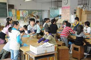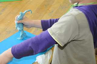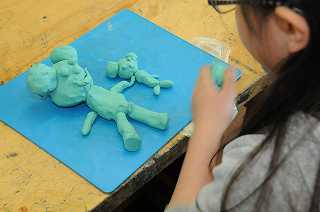 ぼう人形の作品が仕上がってので、粘土で動物などを作っています。